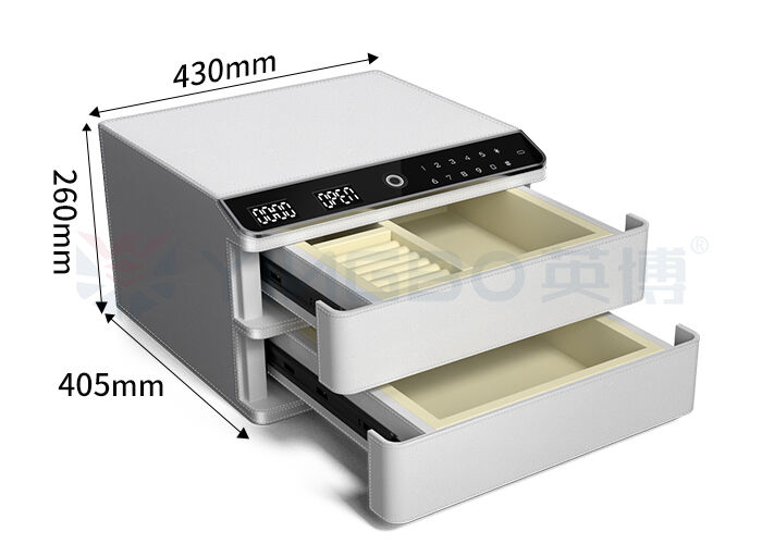 الصندوق الآمن للمجوهرات المغطى بالجلد لديه مظهر جديد، لوحة زجاجية معتدلة، مقاومة للخدوش ودرجة حرارة عالية، تشغيل بصري، بسيط ومريح.